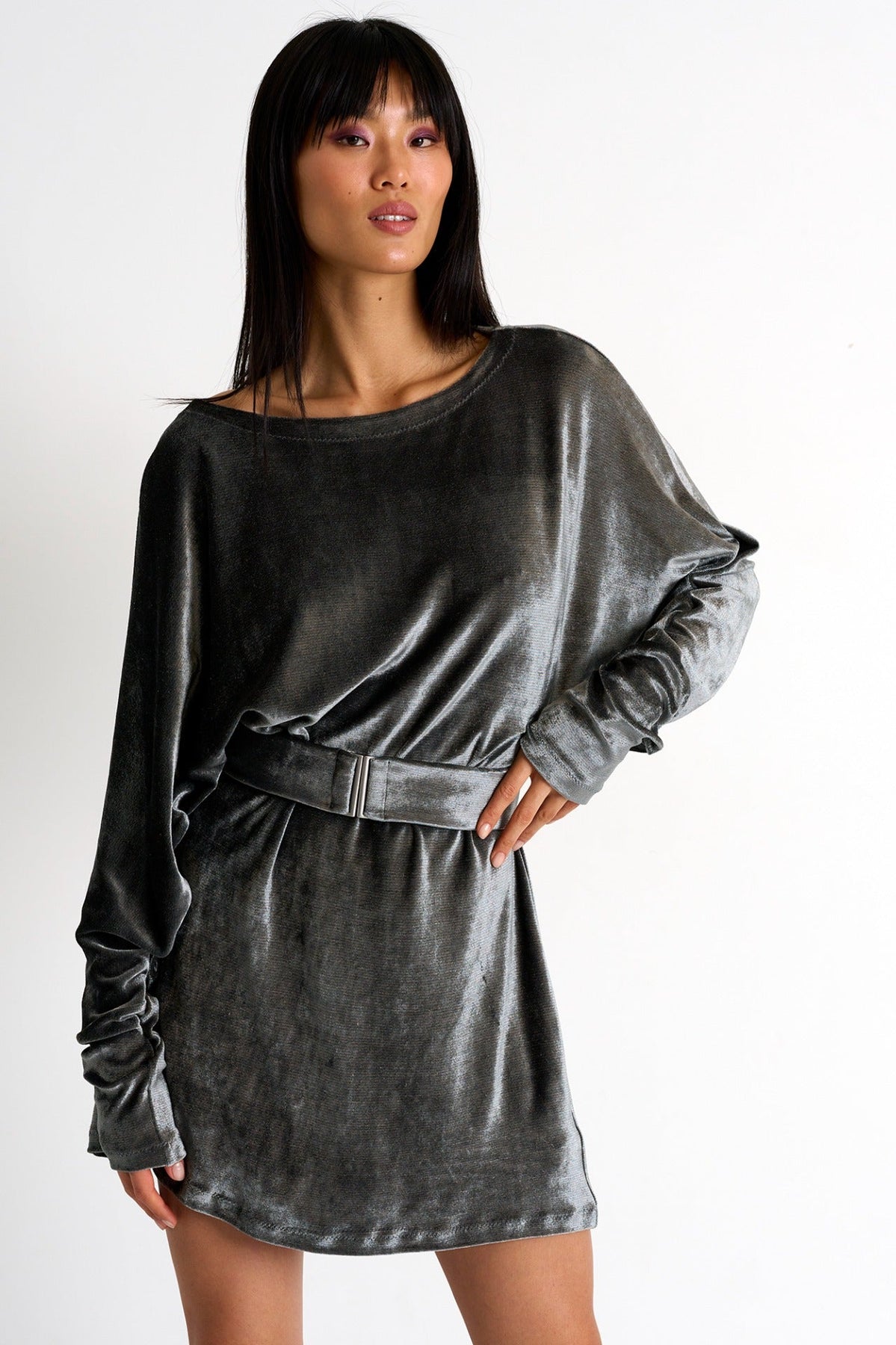 Be ready for your holiday events with this gorgeous cocktail velvet mini dress. Crafted in soft stretch velvet with a built-in belt to accentuate the waist, this is the ultimate chic dress for any party.