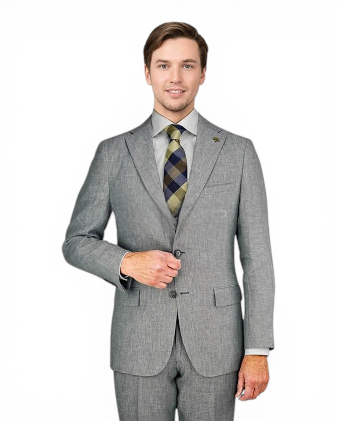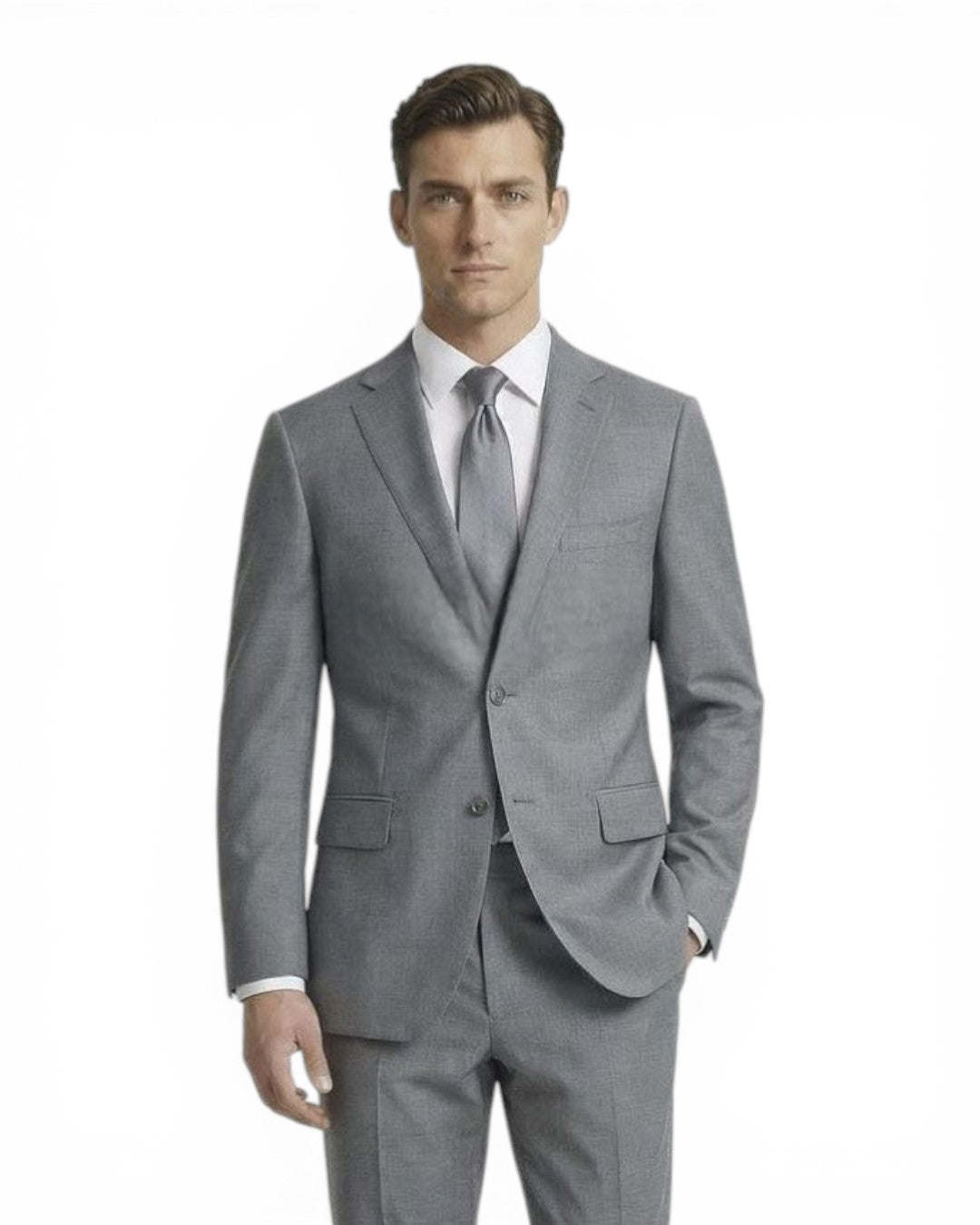 Button Vested No Pleat Suit - Cool Grey Windowpane