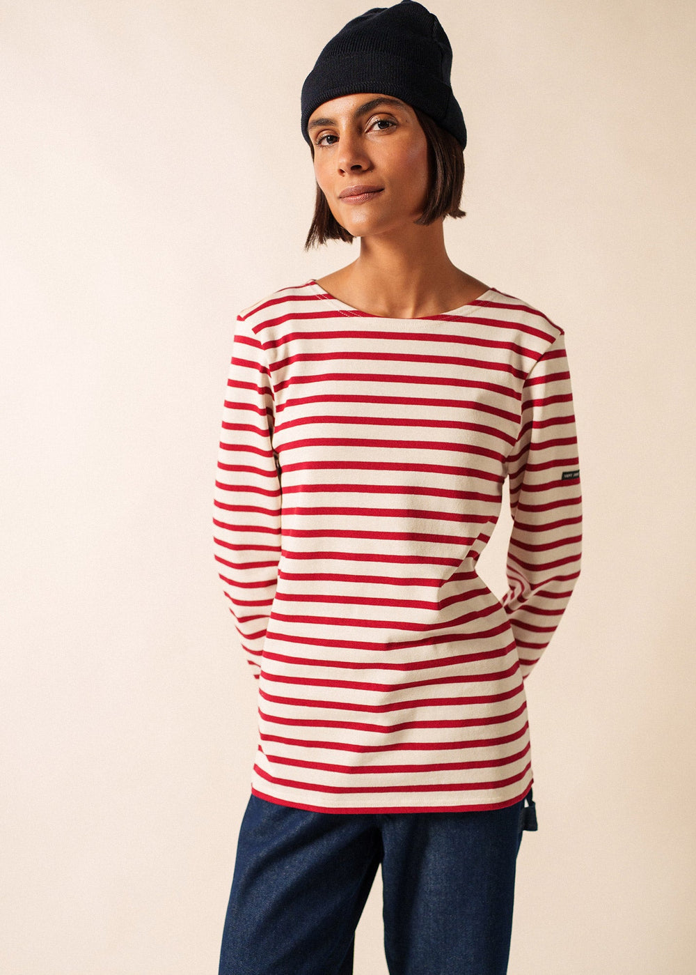 CARTIER - Nautical Striped Wool Blend Beanie (IVORY / NAVY)