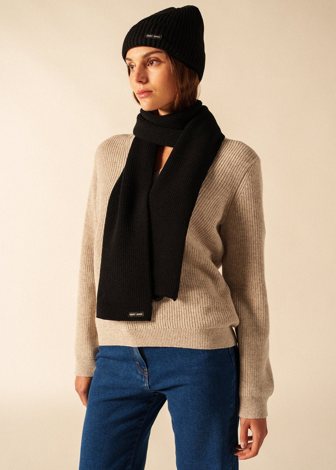 CANOT - Soft Wool Beanie in Purl Knit (BLACK)