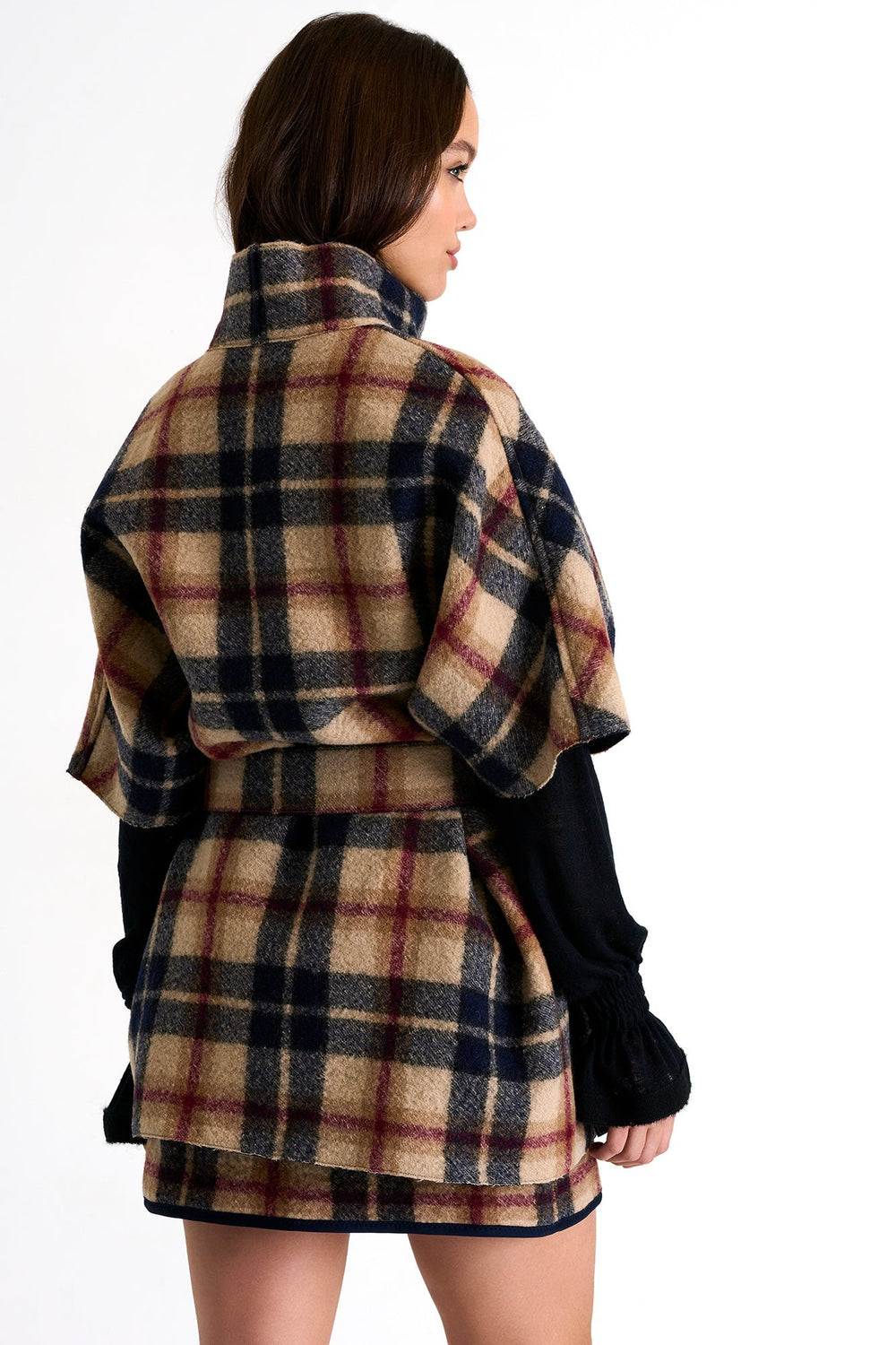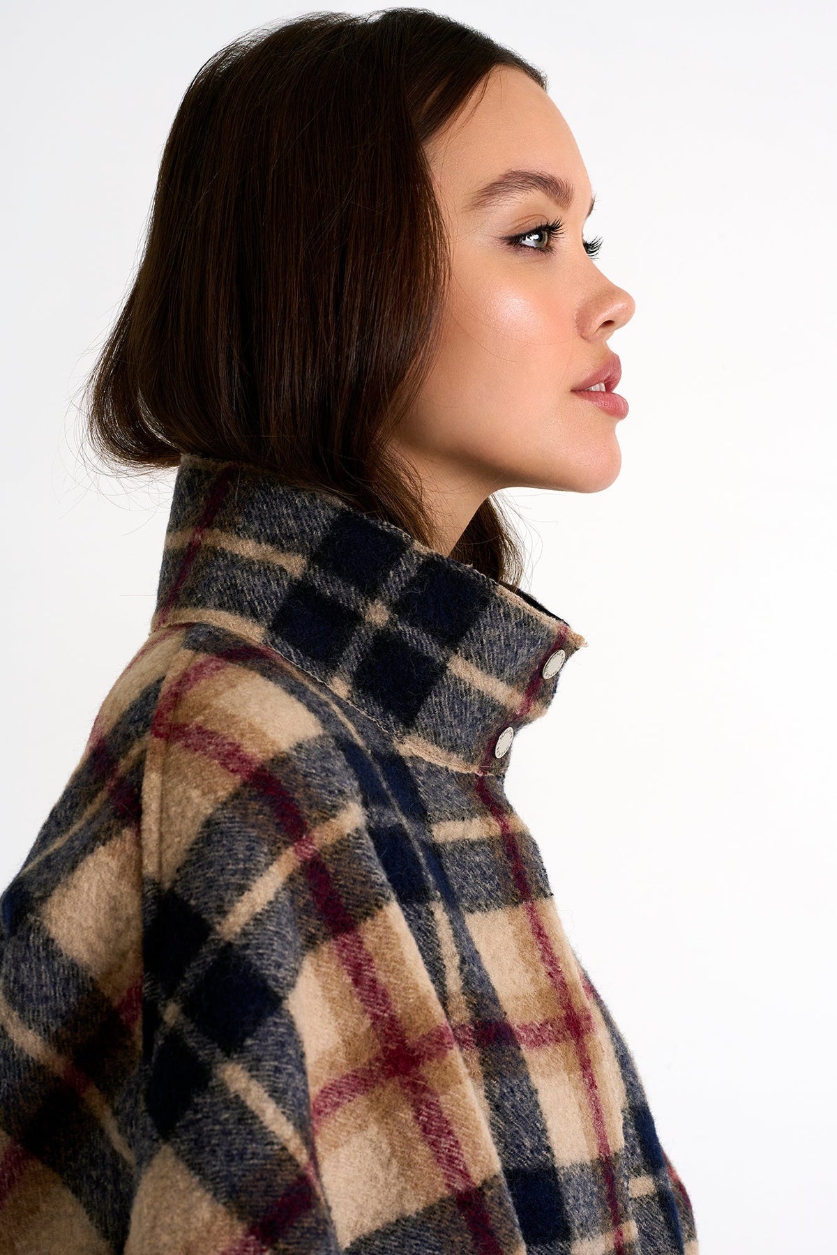 This cape-style coat is accessorized with an adjustable tie belt and metal buttons at the collar giving a chic and refined look. It's the perfect piece to enhance any outfit for the winter season.