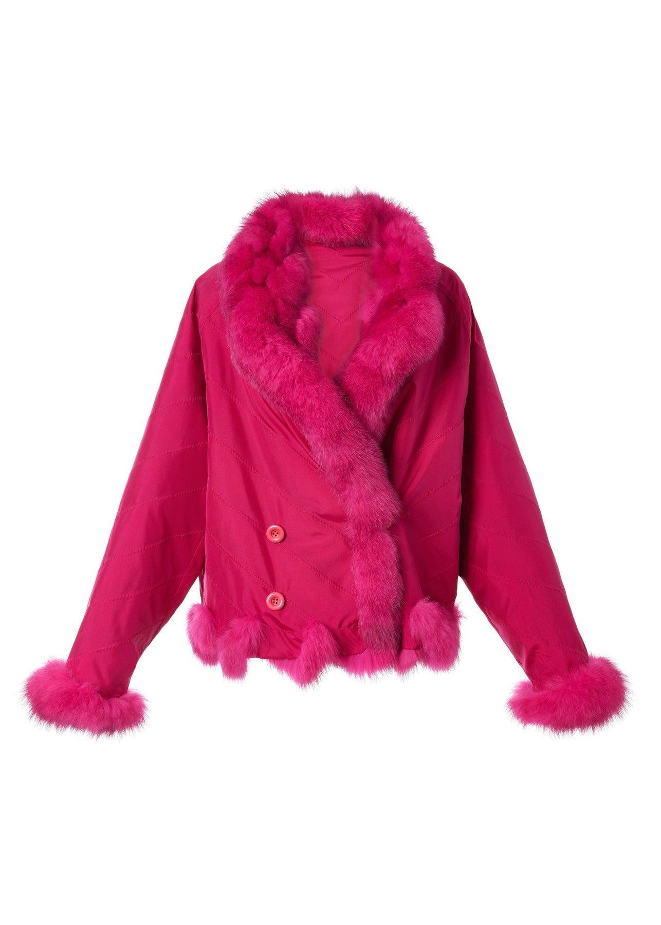 Silk Reversible Double Breasted Bomber In Hot Pink