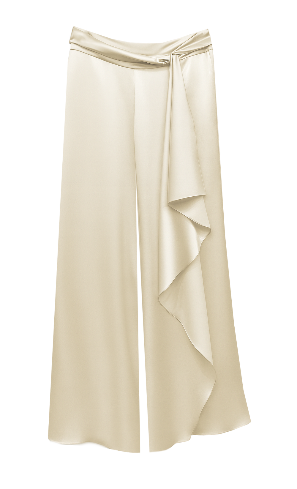 Wide-Leg Draped Pants with Knot Detail in Champagne
