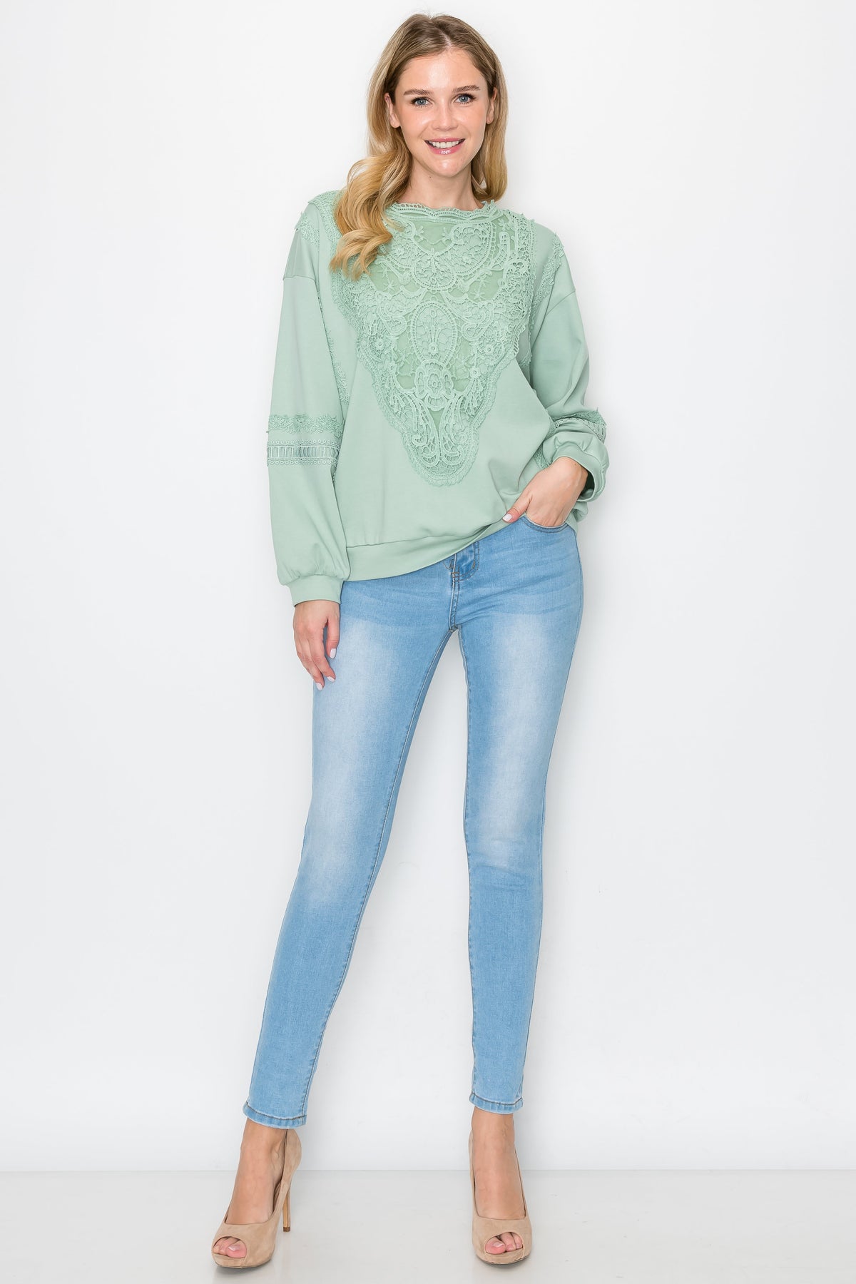 Rabiah Stretch Pointe Knit with Lace 52301RP / Sage / XS