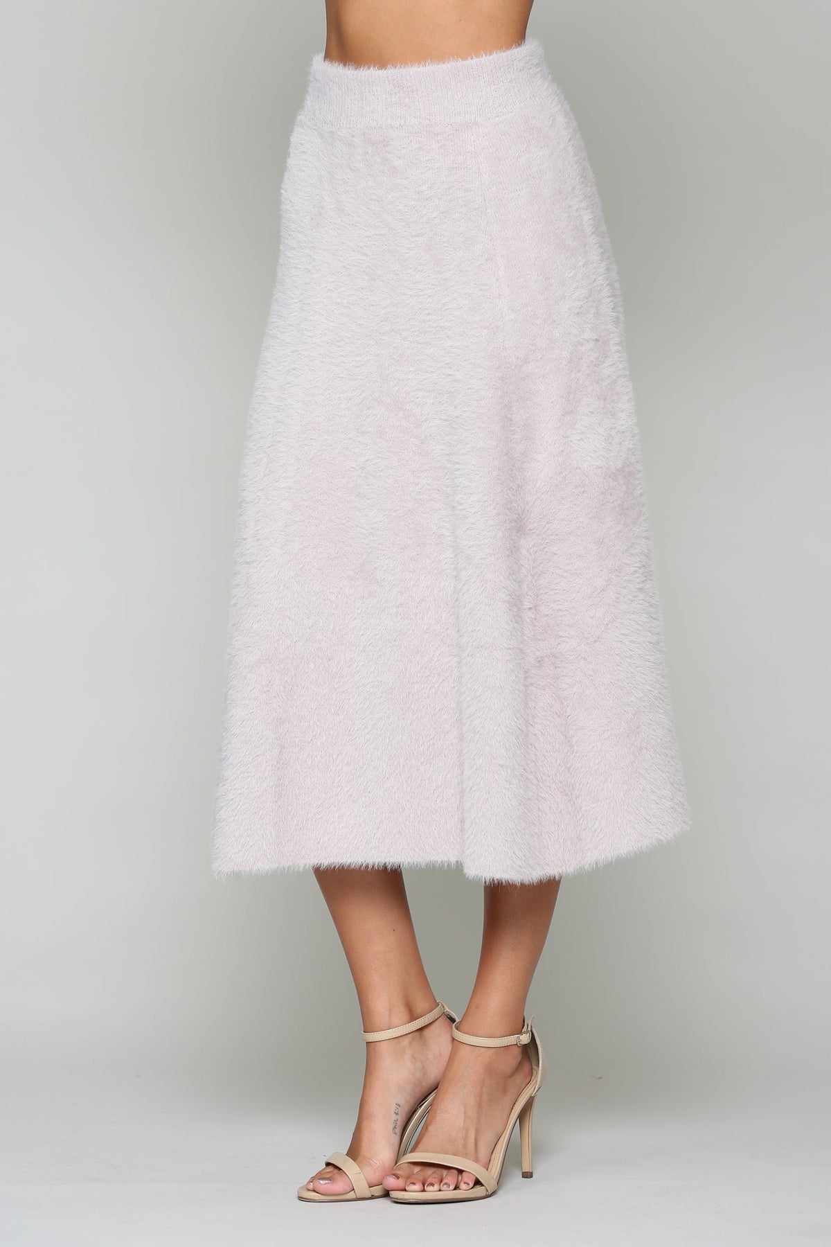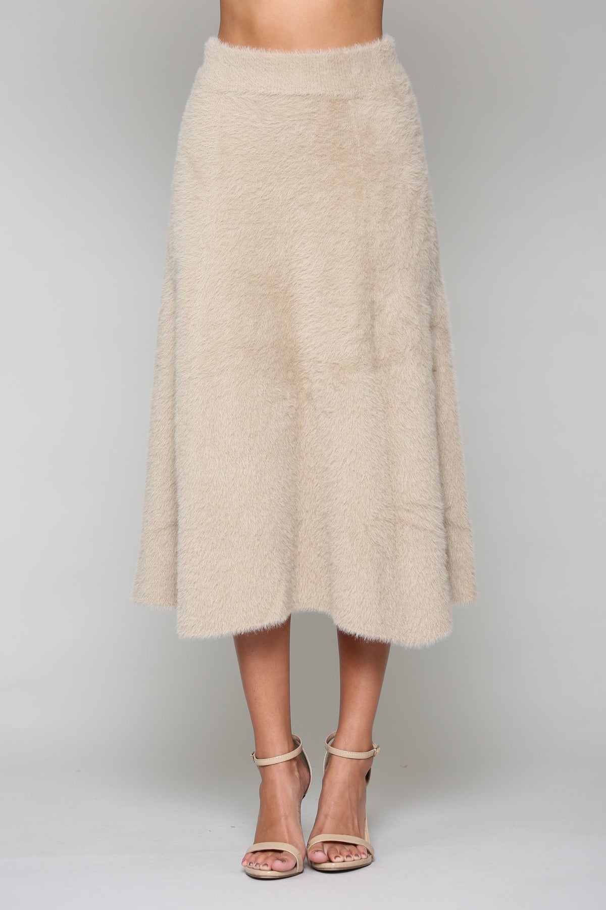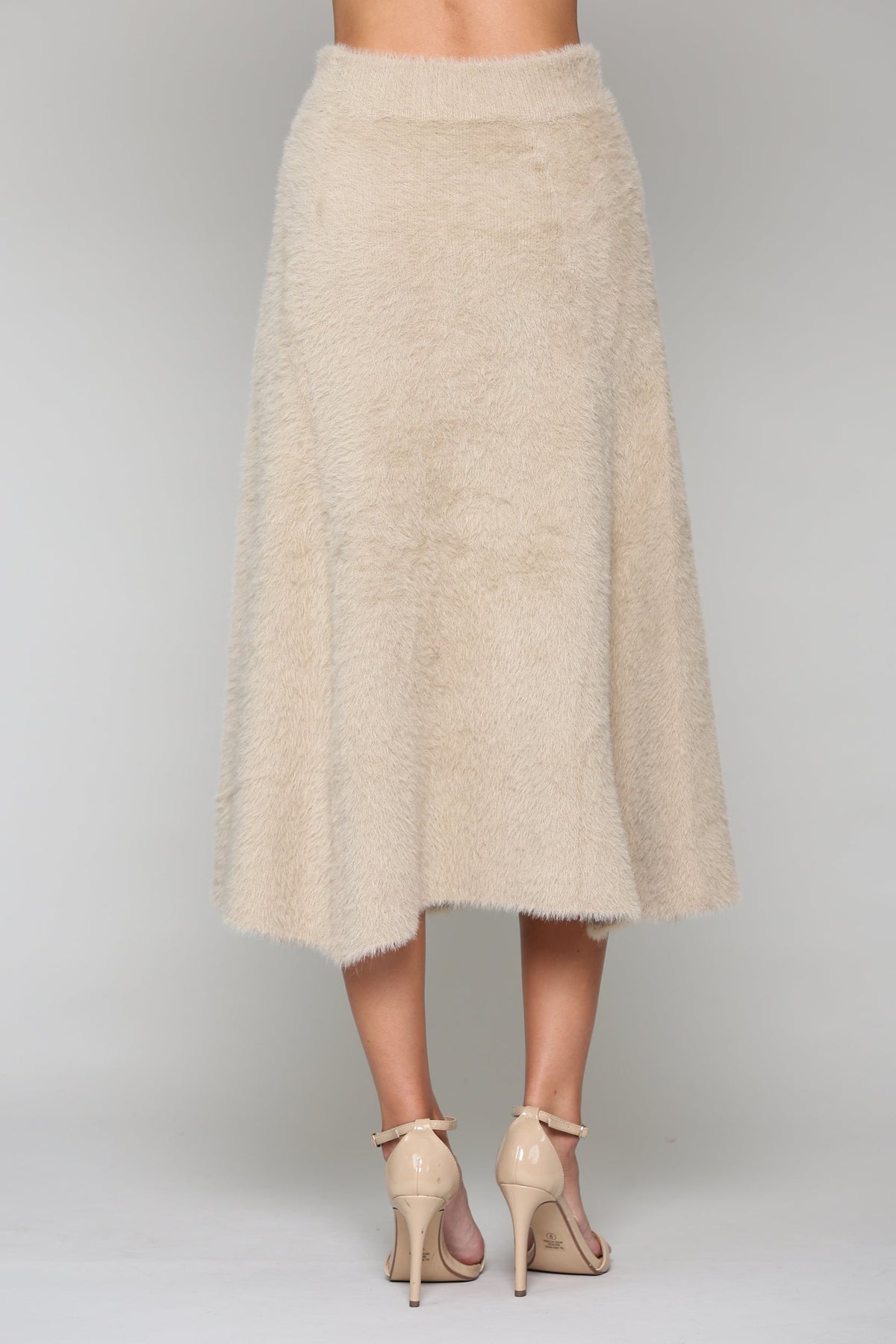 Our Stephanie knit skirt made beautifully with textured faux fur knit. Blends of various yarns. Viscose, poly, nylon, span and cashmere. Elastic waist for the perfect fit. A-line cut. So soft, feels like butter. Very comfy. Very stylish. Timeless. Relax easy fit. Perfect to pair with matching Shannon top.