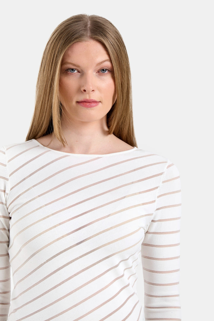 The Magnet Sweater offers a refined balance of structure and softness, with subtle sheer stripes that add depth to its minimalist silhouette. Designed for versatility, it pairs effortlessly with any wardrobe, making it a timeless essential.