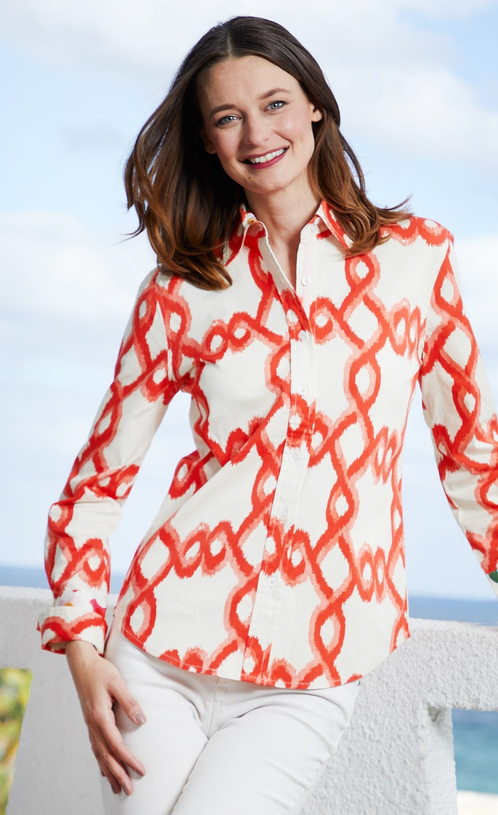 Rome Shirt Orange White Flame Stitch