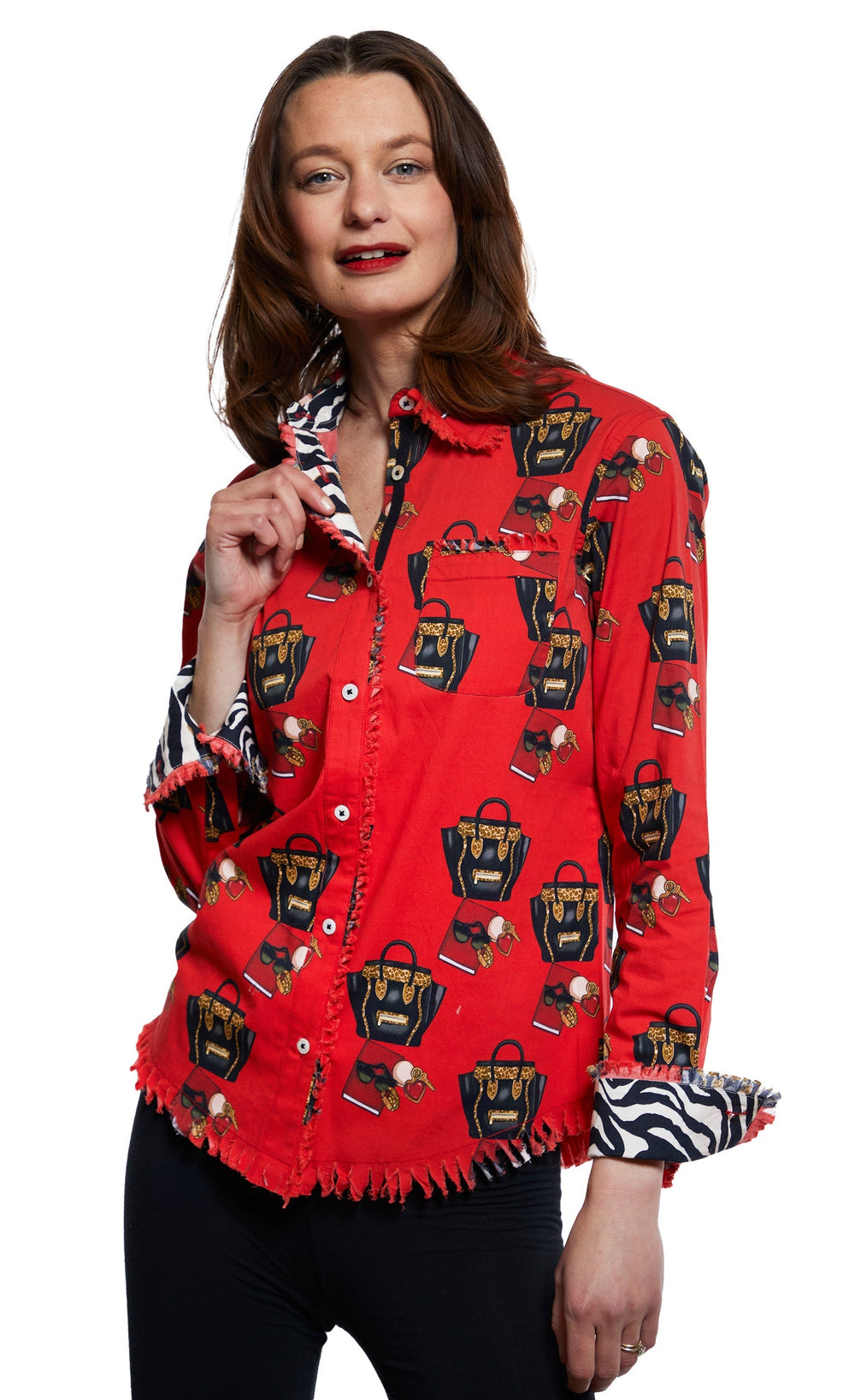 Be the ultimate fashionista with Cape Cod Handbag print on red ground! This statement piece features a vibrant red ground and a trendy handbag print, perfect for adding a pop of personality to any outfit. Show off your playful style with our Fashionista Top.