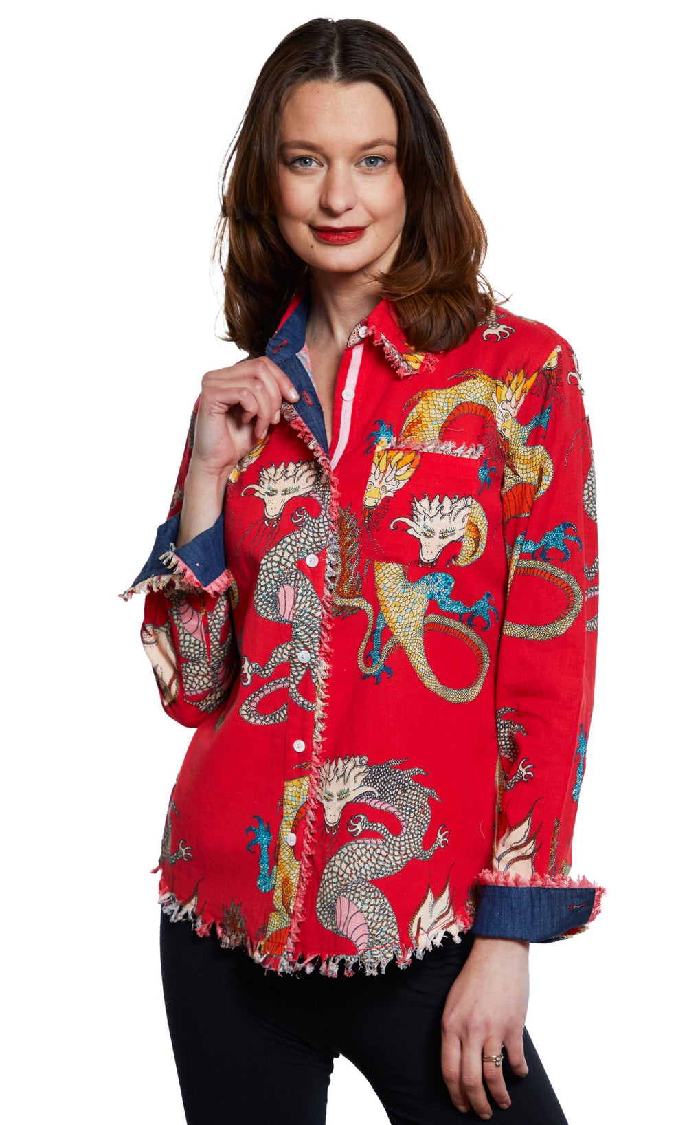 Unleash your inner dragon with Cape Cod Tunic in Red Ground Dragon Print! This playful and quirky tunic features a unique graphic print that will make you stand out. Perfect for a casual day out or a fun night in, this tunic will add a touch of whimsy to any outfit.