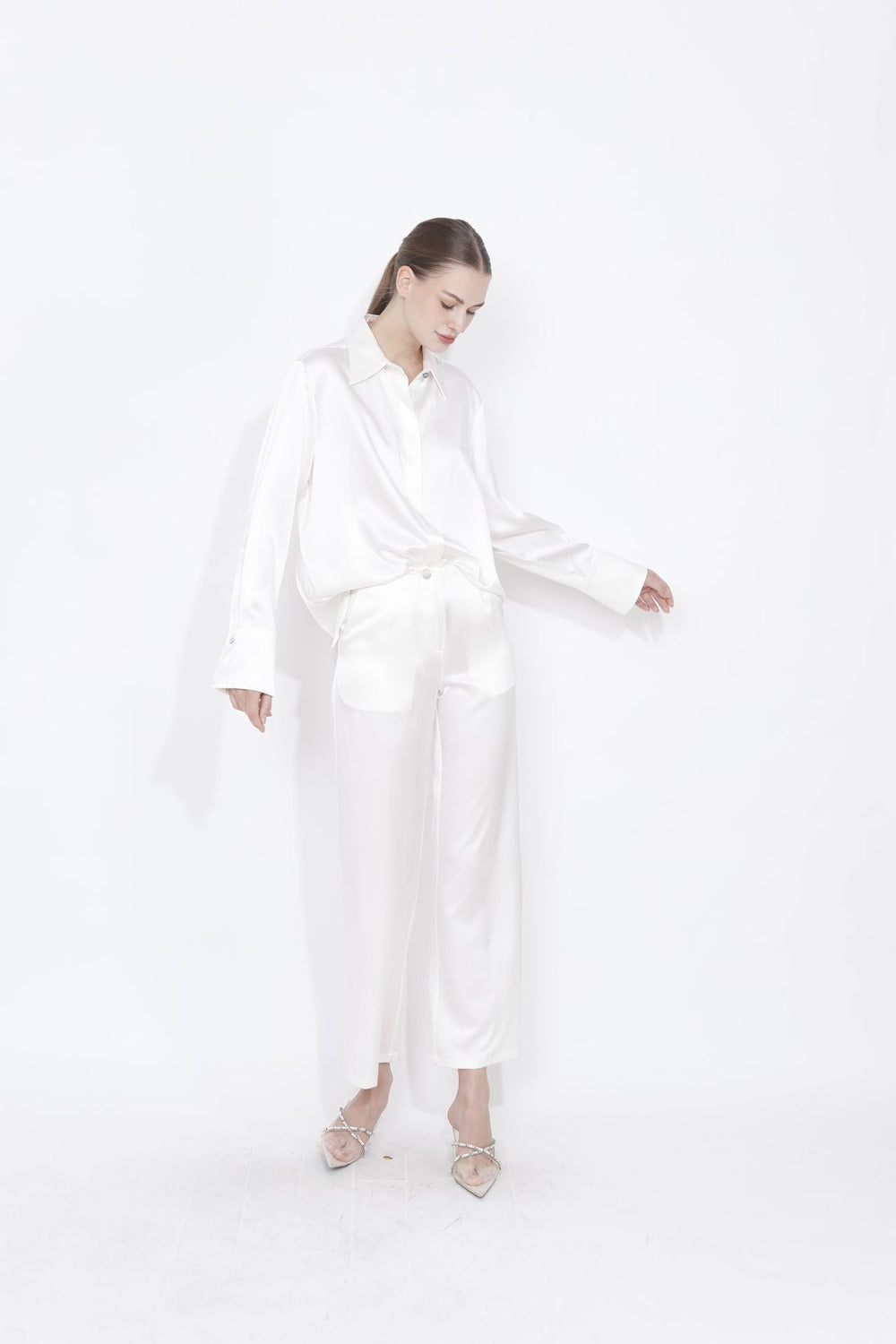 Luxurious White Silk Button Down Shirt