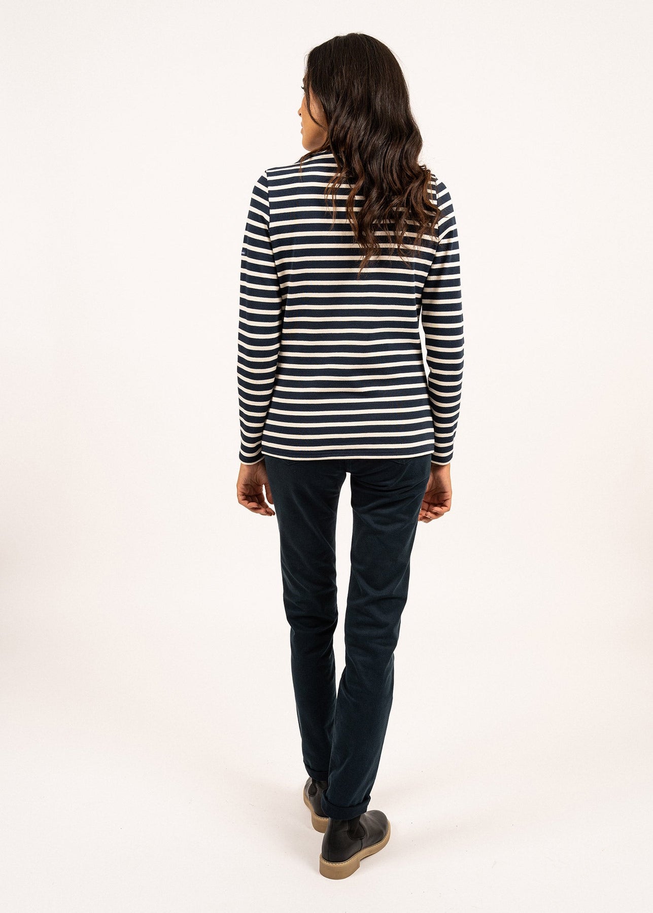 The MERIDAME II reimagines the timeless Breton stripe with refined femininity. Crafted from 100% carded cotton in a substantial heavyweight jersey, this shirt delivers the comfort of a sweatshirt with nautical heritage. The rounded neckline and tailored silhouette offer relaxed elegance for everyday wear. Authentically produced in Saint-James, Normandy, France, this piece combines traditional craftsmanship with contemporary design sensibility.